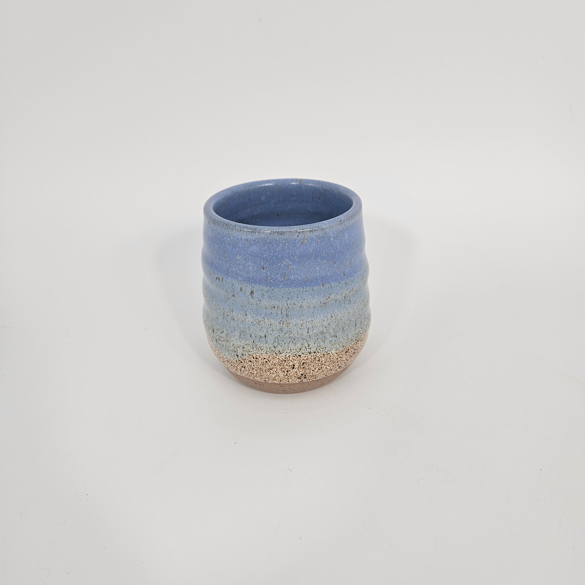 Tasse à cappuccino (4 oz) avec glaçure mixte "Titanic Wave" et "Snowflecks" sur un mélange d'argile.