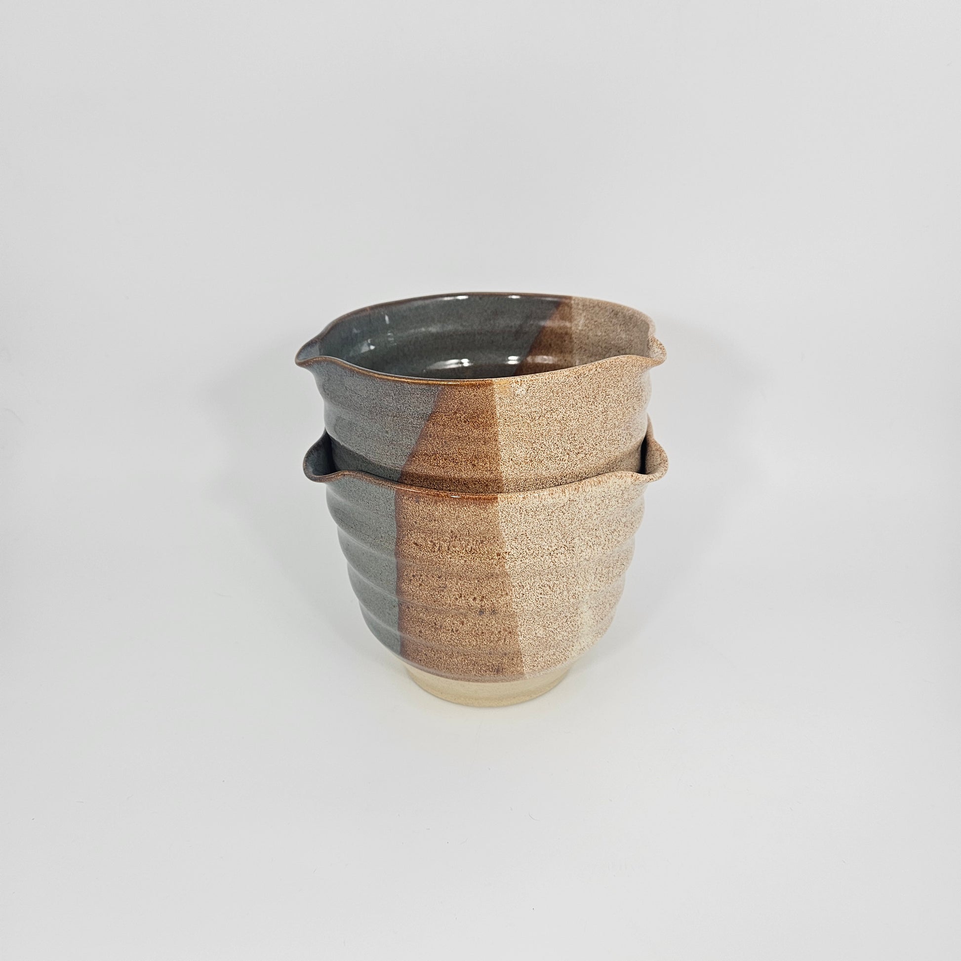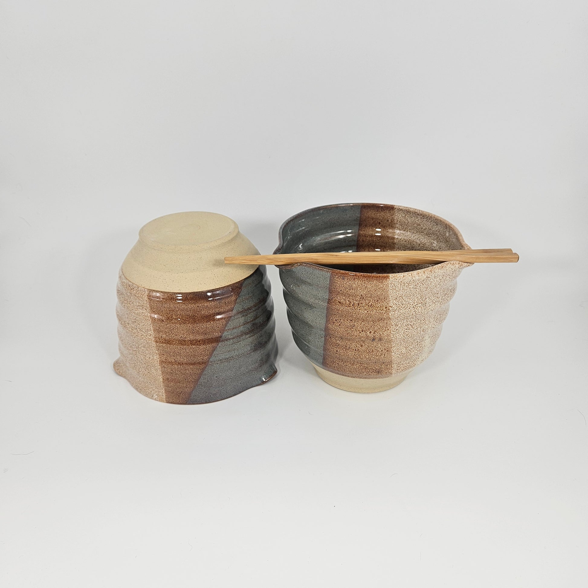 Ensemble de bols à ramen avec glaçure mixte "Ferric Fervor" et "Snowflecks" sur argile unie.